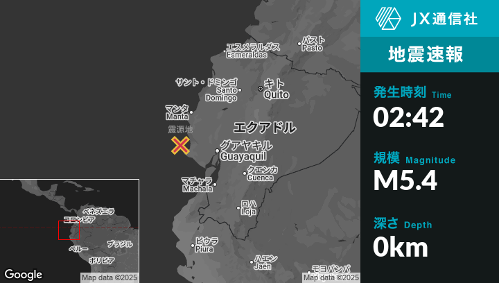 | 震源地 | エクアドルのSalinasから北北西38kmの地点 |
