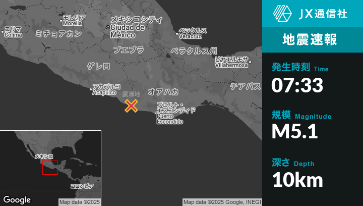 | 震源地 | メキシコのCorraleroから北東8kmの地点 |