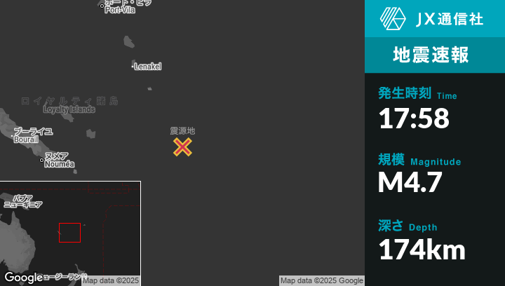 | 震源地 | バヌアツのIsangelから南南東295kmの地点 |