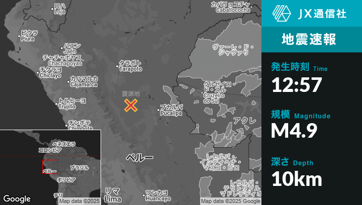 | 震源地 | ペルーのTocacheから東82kmの地点 |