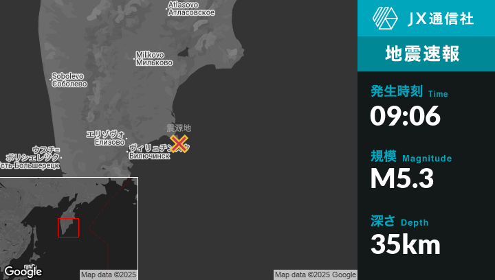 | 震源地 | ロシアのPetropavlovsk-Kamchatskyから東95kmの地点 |
