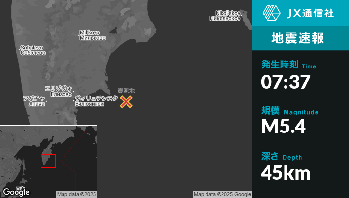| 震源地 | ロシアのPetropavlovsk-Kamchatskyから東144kmの地点 |