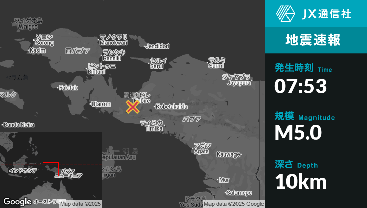 | 震源地 | インドネシアのNabireから南29kmの地点 |