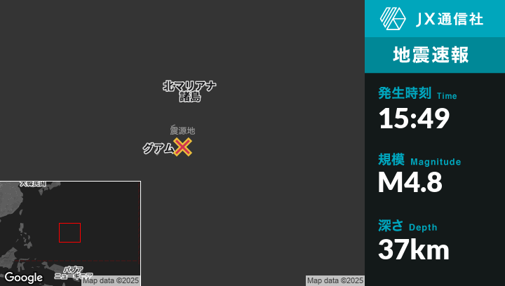 9月20日 15:49頃、グアムのYigo Villageから東66kmの地点でM4.8の地震がありました。