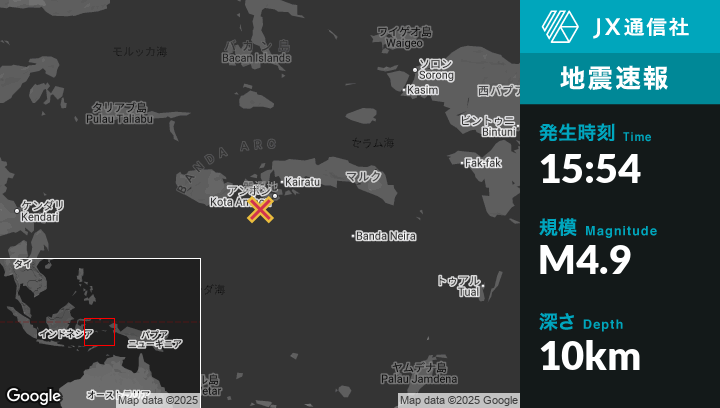 | 震源地 | インドネシアのAmbonから西南西39kmの地点 |