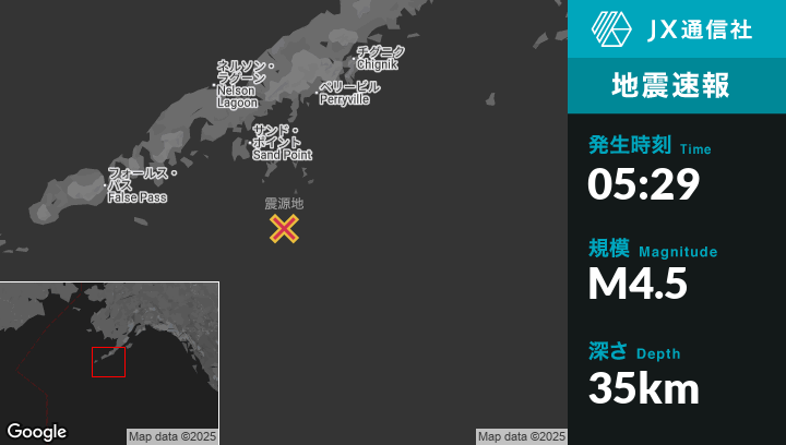 | 震源地 | アラスカのSand Pointから南南東111kmの地点 |