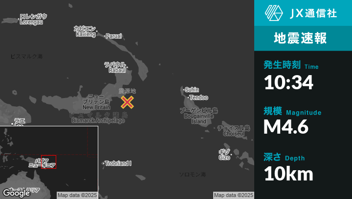 | 震源地 | パプアニューギニアのKokopoから南142kmの地点 |