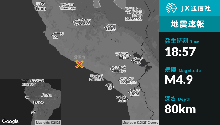 | 震源地 | ペルーのAchanizoから南東25kmの地点 |