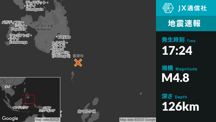 | 震源地 | フィリピンのPondaguitanから南東163kmの地点 |