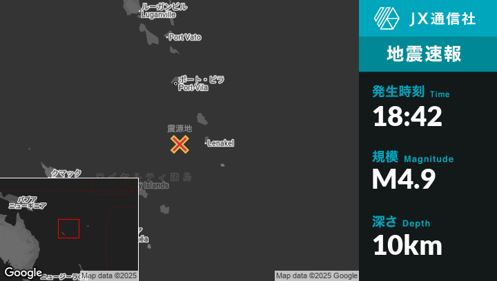 | 震源地 | バヌアツのIsangelから西88kmの地点 |