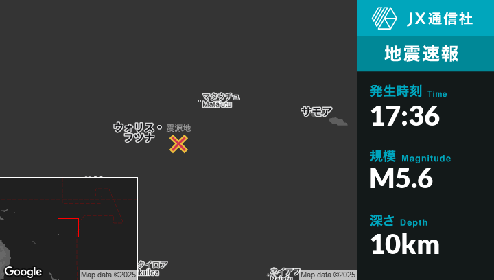 12月26日 17:36頃、ウォリス・フツナのAloから東136kmの地点でM5.6の地震がありました。