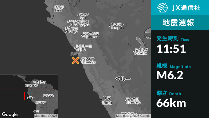 | 震源地 | ペルーのPuerto Santaから西36kmの地点 |
