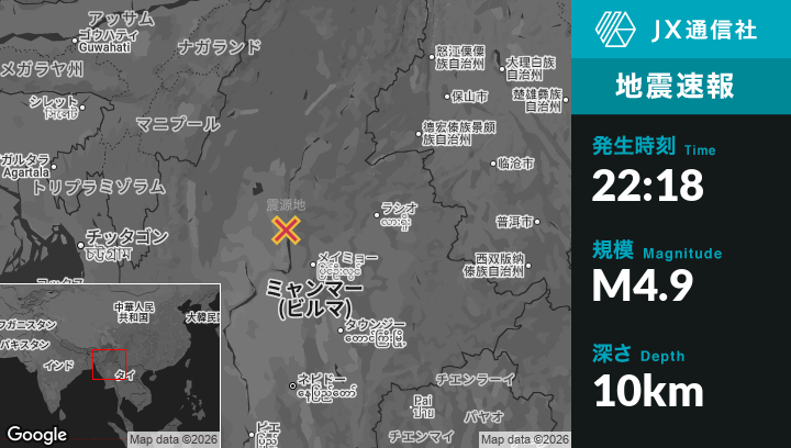 | 震源地 | ビルマ(ミャンマー)のShweboから北東32kmの地点 |