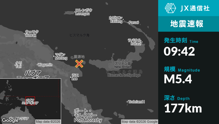 | 震源地 | パプアニューギニアのFinschhafenから北北西104kmの地点 |