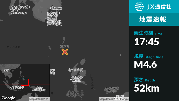 | 震源地 | インドネシアのTobeloから北西217kmの地点 |