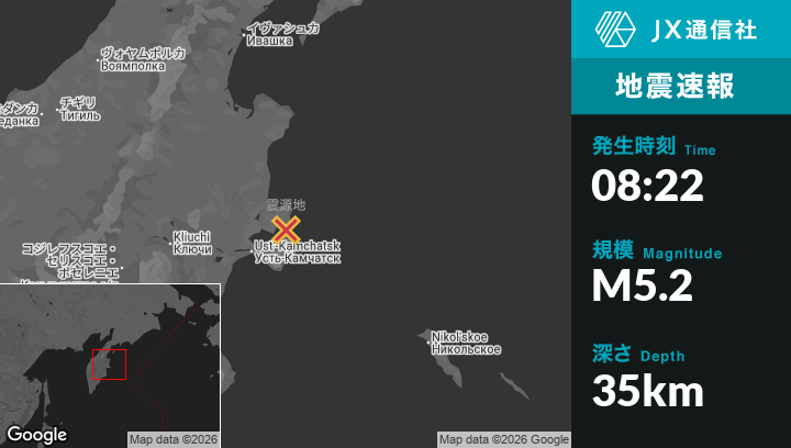 | 震源地 | ロシアのUst’-Kamchatsk Staryyから北東53kmの地点 |