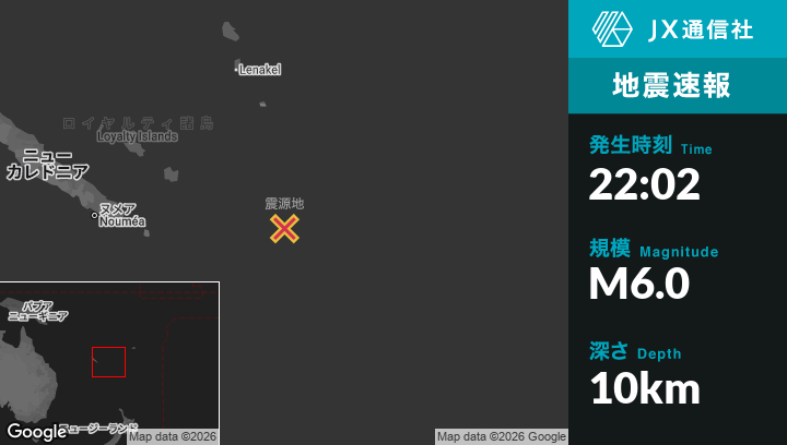 | 震源地 | ニューカレドニアのTadineから東南東260kmの地点 |